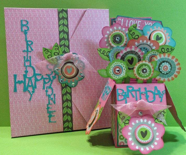 This is my first attempt at the Card in a Box. I made this for my granddaughters 8th. birthday using the New Revised Z Fold Card -IN-A-Box by Deb Valder of stampladee.com I hope she likes it. I had to make a 1/4″ deep envelope for it because it is so thick. It is made with the Lollydoodle Paper Collection.